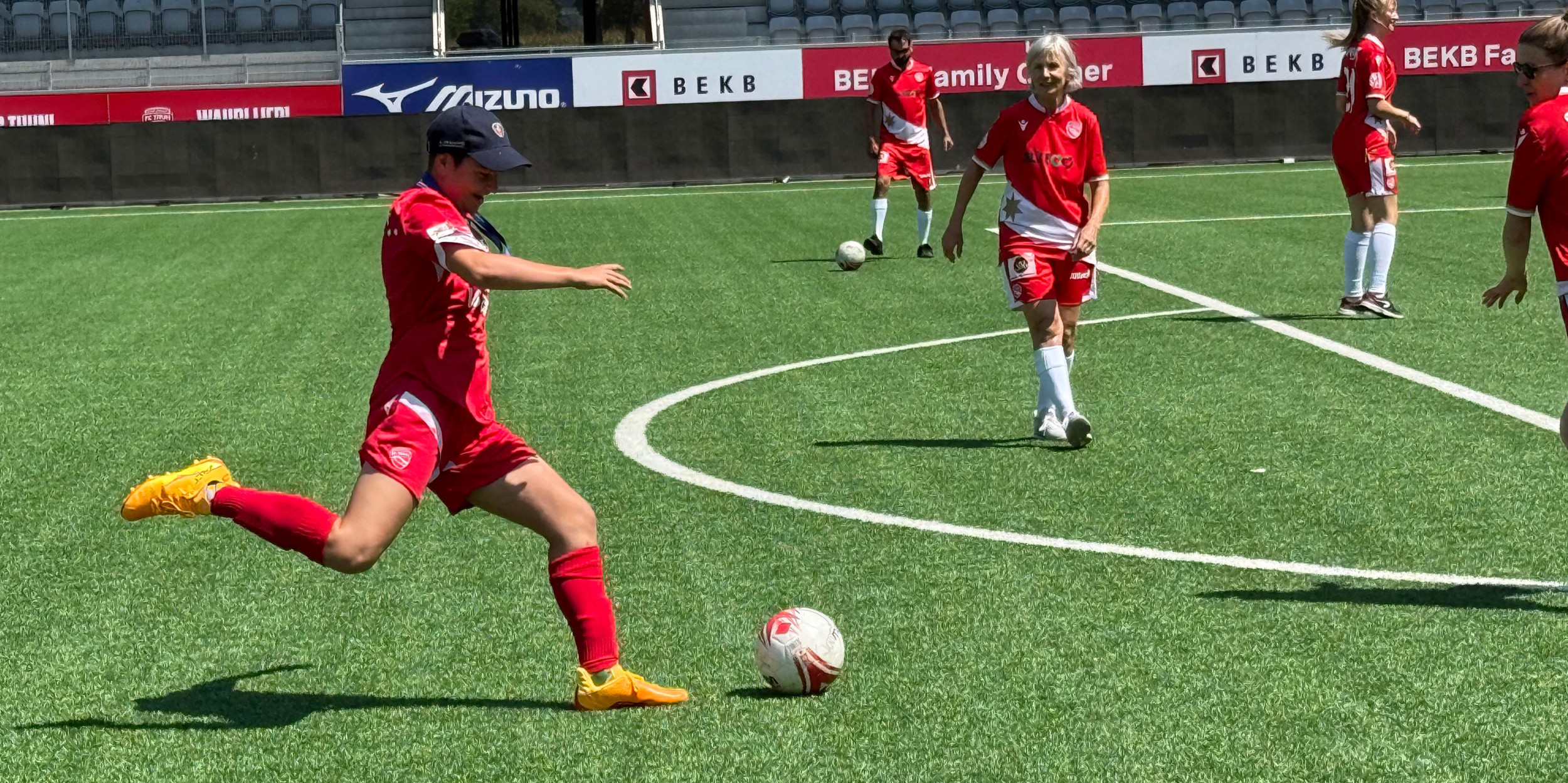 Diesen Traum durften wir ihr erfüllen – mit einem ganz besonderen «Grümpelturnier» im Stadion des FC Thun, gemeinsam mit Familie und Freunden. Ausgestattet mit Trikot, Fussballschuhen und Knieschonern lief Lena zusammen mit zwei Teams durch den Spielertunnel aufs Feld. Ein echter Schiedsrichter leitete die Partie, während von den Rängen lauter Jubel und Anfeuerungsrufe der begeisterten Fans zu hören waren. Lena glänzte auf dem Platz, kämpfte um jeden Ball und strahlte über das ganze Gesicht.