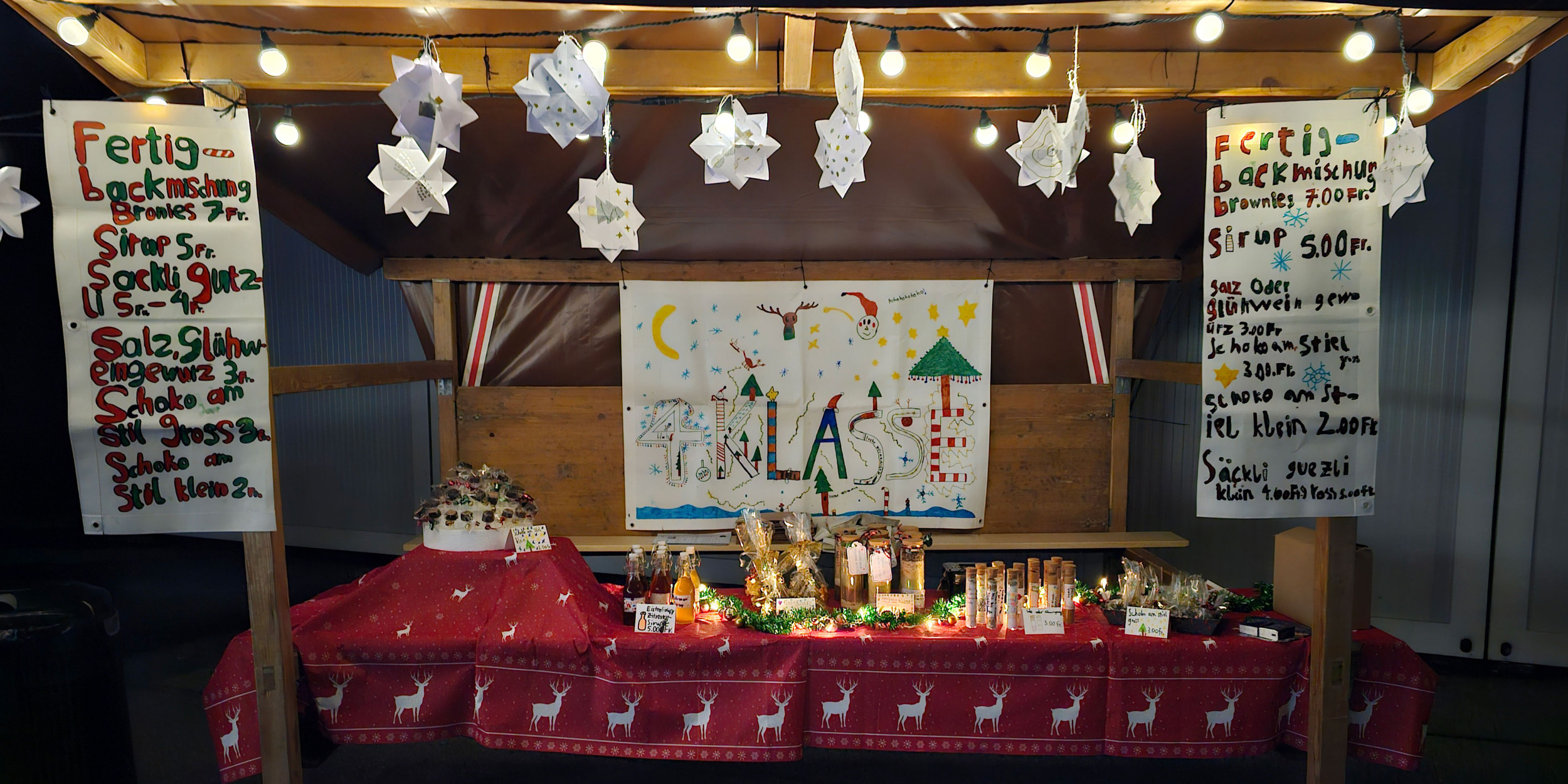 Anschliessend erstrahlte der Schulvorplatz als stimmungsvoller Weihnachtsmarkt, auf dem die Klassen stolz ihre liebevoll handgefertigten Schätze präsentierten und zum Verkauf anboten. Der gesamte Erlös des Weihnachtsmarktes floss an die Sternschnuppe. Ein herzliches Dankeschön für dieses wunderbare, kreative Engagement – ihr habt den Advent auf besondere Weise verzaubert!